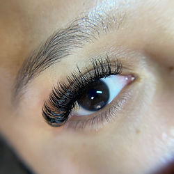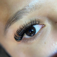 A cat eye with an "Half lash" or "Ombre" affect. Using classic lashes in the inner corners building up to volume fans at the mid to outer eye; creating that very noticible cat-eye wing.